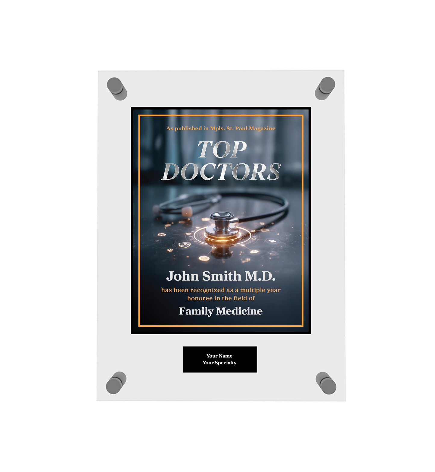 Congratulations! You've been named a Mpls. St. Paul Magazine Top Doctor! To commemorate this special honor, you have the opportunity to purchase an official plaque for your home or office!