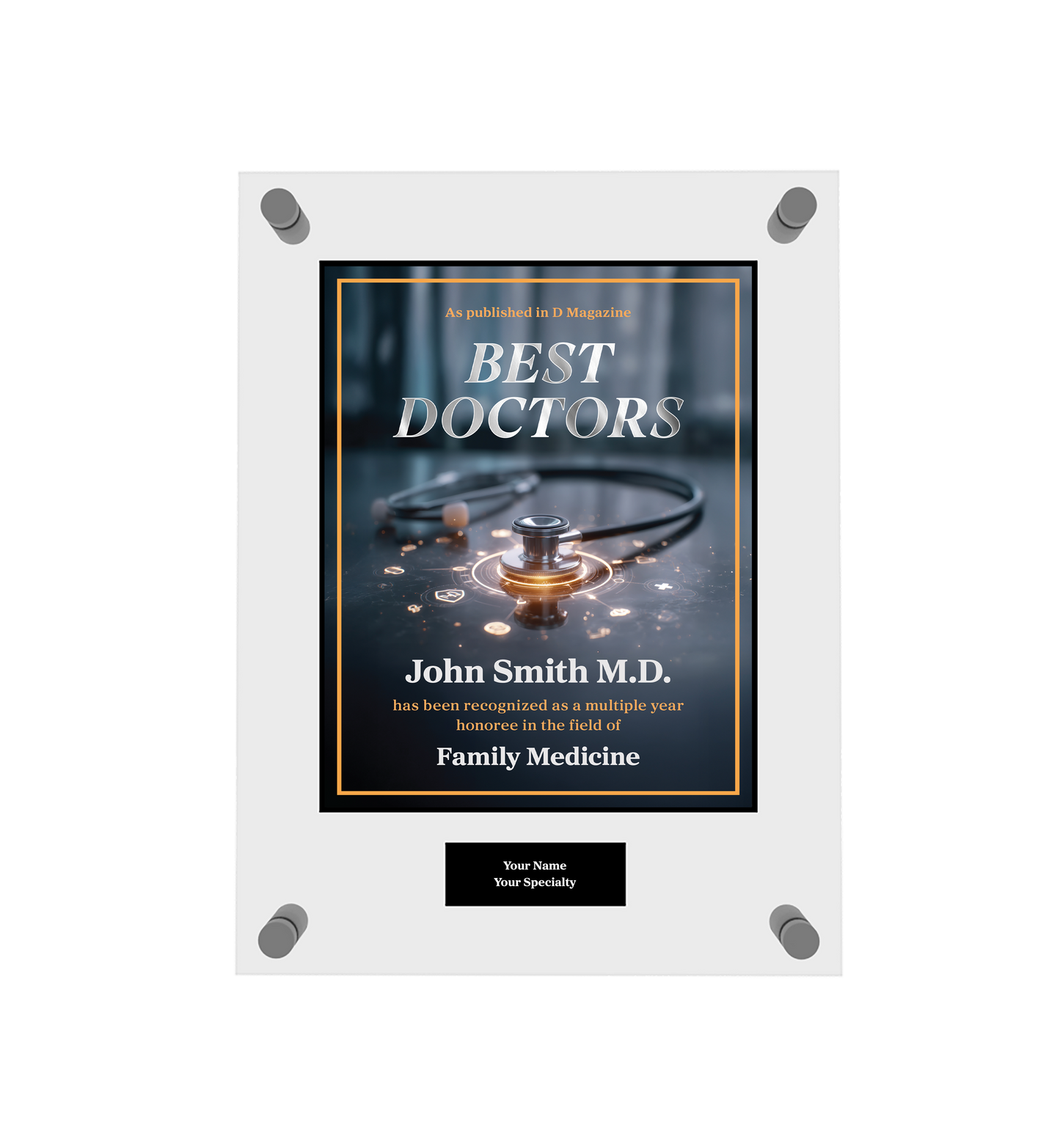 Congratulations! You've been named a D Magazine Best Doctor! To commemorate this special honor, you have the opportunity to purchase an official plaque for your home or office!